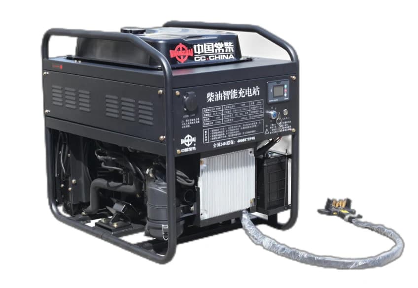 The CC170A is an integrated intelligent charging station developed for drone charging applications. It combines a diesel power unit, DC output system, intelligent control system, and startup panel into a compact open-frame structure, suitable for field and agricultural operations.